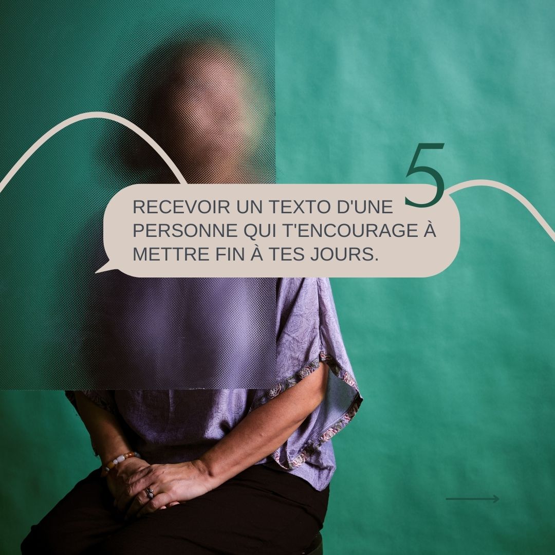 5. Recevoir un texto d’une personne qui t’encourage à mettre fin à tes jours.