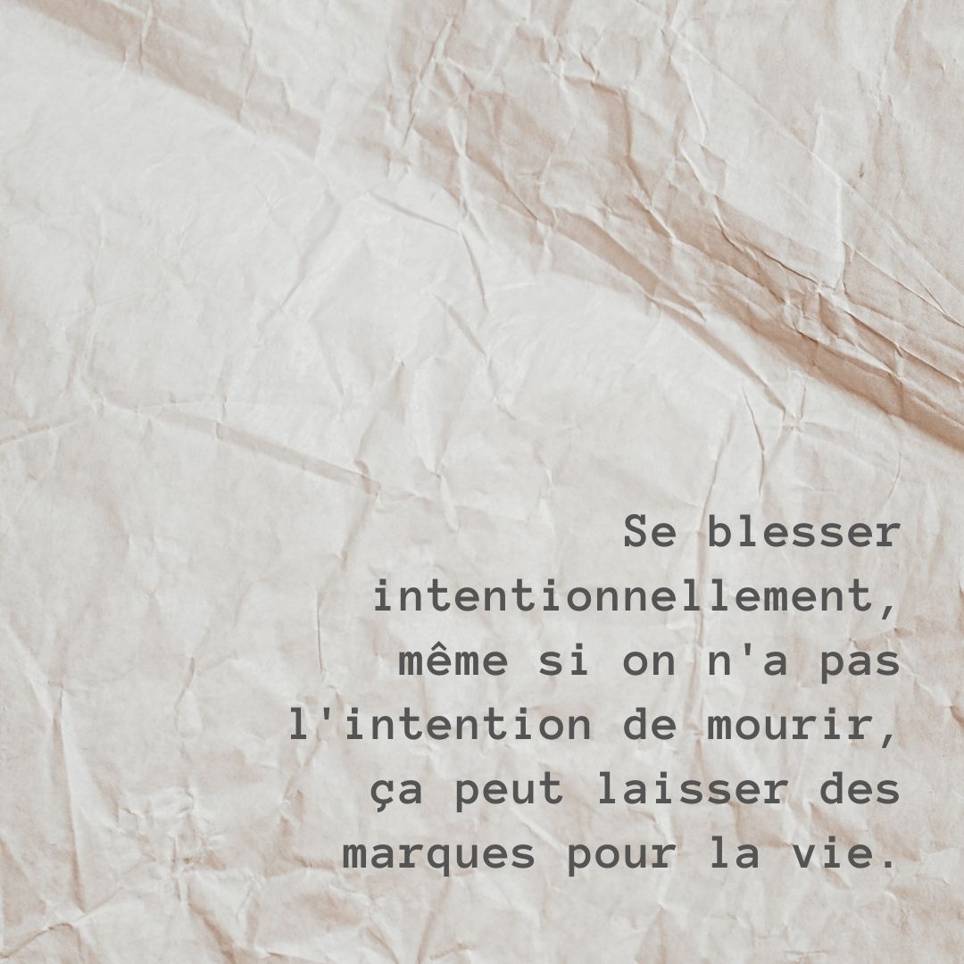 Se blesser intentionnellement, même si on n’a pas l’intention de mourir, ça peut laisser des marques pour la vie.
