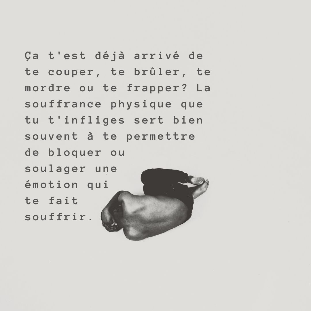 Pourquoi quelqu’un s’automutile? La plupart du temps, la souffrance physique que s’inflige une personne lui permet de bloquer ou de soulager une souffrance psychologique, soit une émotion.