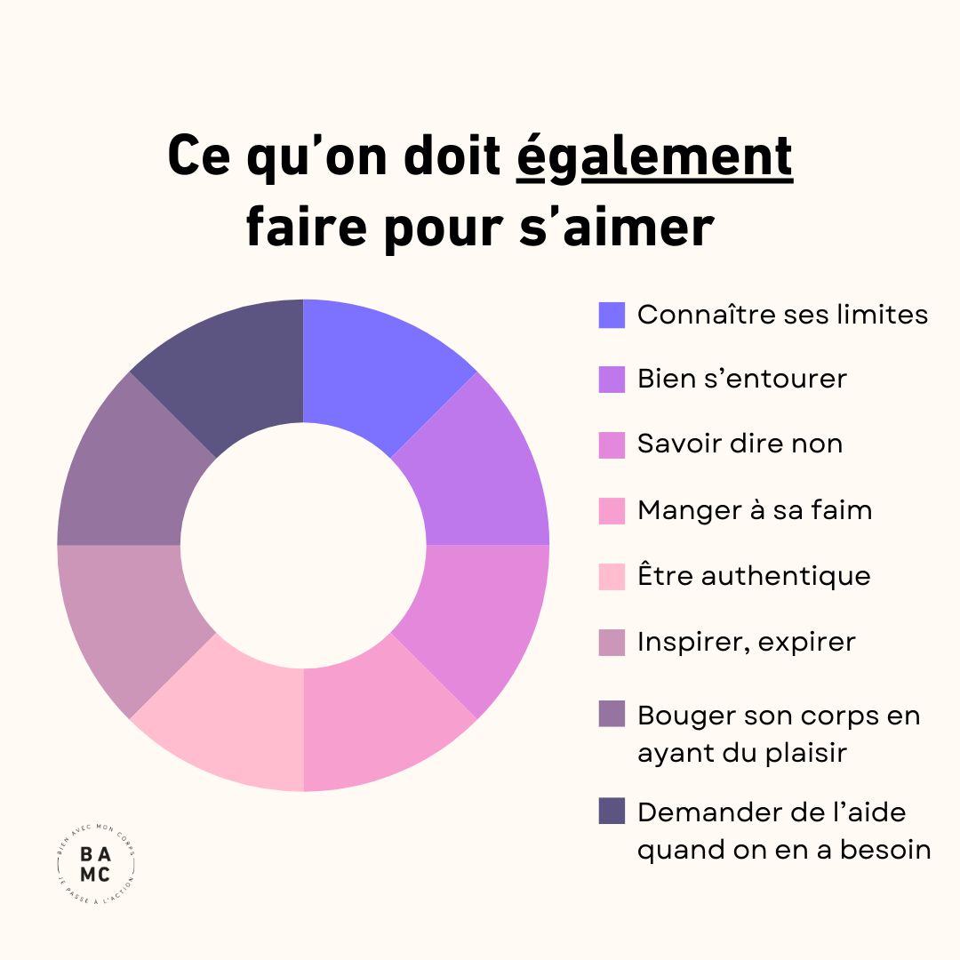 Flash news : s’aimer, ça se fait pas en 4 étapes « faciles ». C’est un combat de tous les jours qui passe par une panoplie d’éléments.