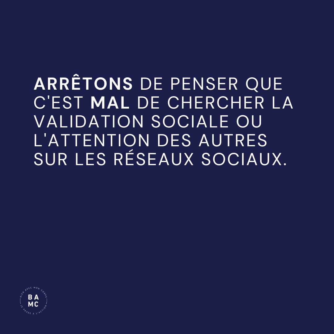 Il faut arrêter de croire que c’est mal de chercher la validation sociale ou l’attention des autres sur les réseaux sociaux. Par exemple, le fait de publier des photos de soi peut faire partie d’un processus d’acceptation de soi. Il a été démontré que les personnes qui traversent une rupture amoureuse ont tendance à être plus actives sur les réseaux sociaux, car elles sont en reconstruction. Il en va de même pour les personnes qui sont en quête de réappropriation de leur corps.