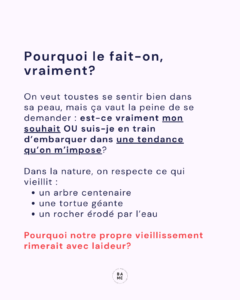On veut toustes se sentir bien dans sa peau, mais ça vaut la peine de se demander : est-ce vraiment mon souhait OU suis-je en train d’embarquer dans une tendance qu’on m’impose?