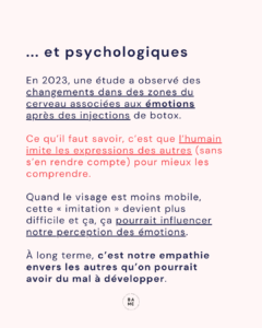 En 2023, une étude a observé des changements dans des zones du cerveau associées aux émotions après des injections de botox.