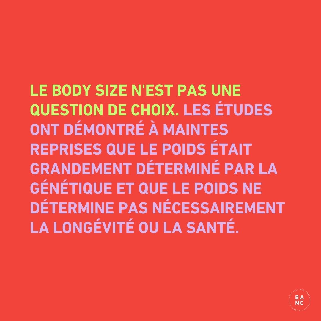 Le body size d’une personne n’est (souvent) pas une question de choix. Les études ont démontré à maintes reprises que le poids était grandement déterminé par la génétique et que le poids ne déterminait pas nécessairement la longévité ou la santé d’une personne.