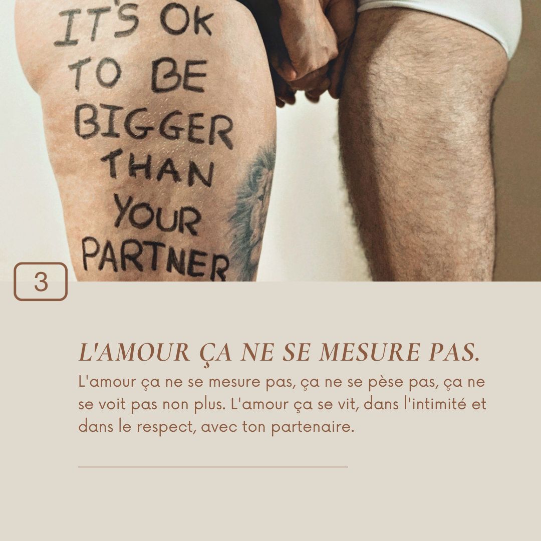 L’AMOUR ÇA NE SE MESURE PAS. L’amour ça ne se mesure pas, ça ne se pèse pas, ça ne se voit pas non plus. L’amour ça se vit, dans l’intimité et dans le respect, avec ton partenaire.