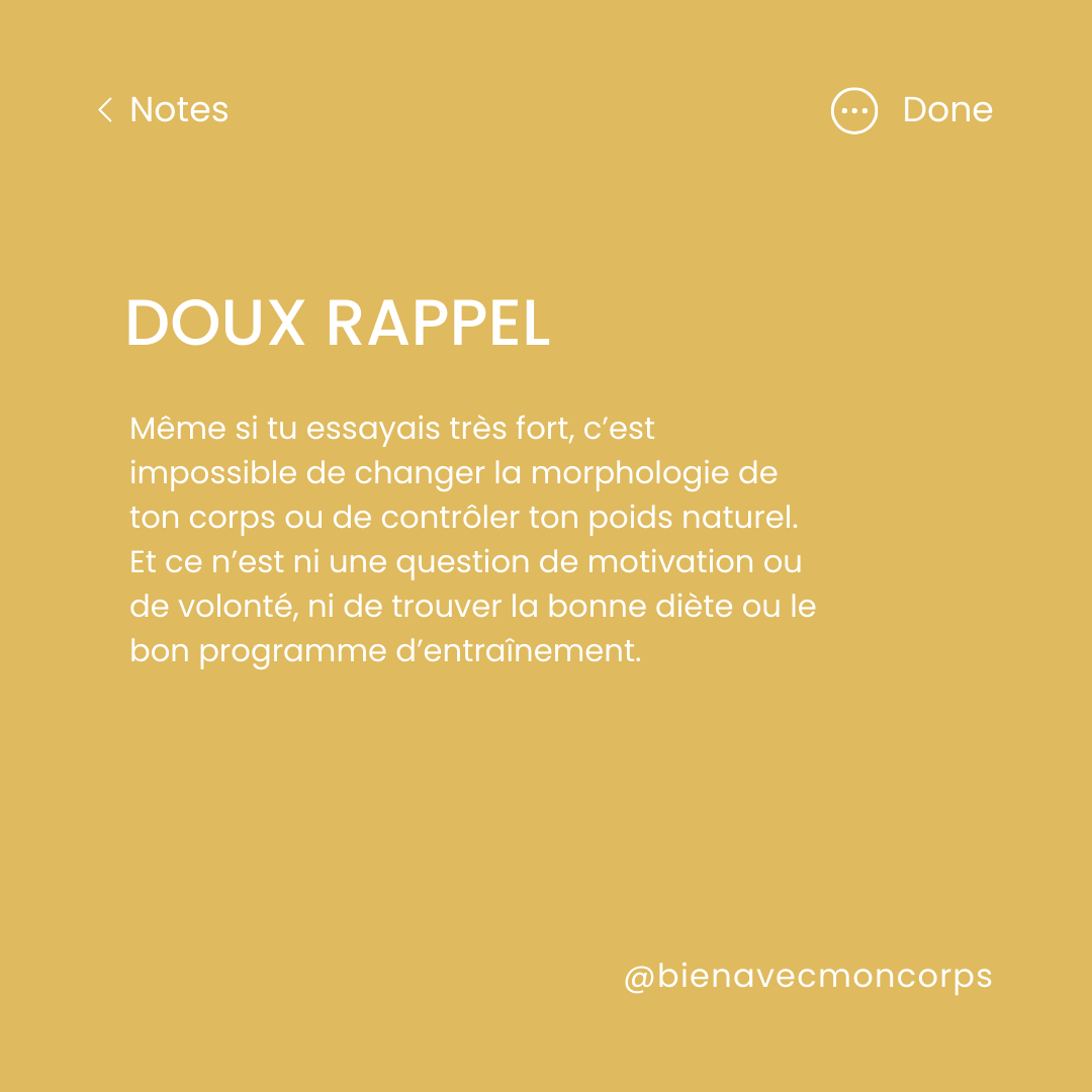 Même si tu essayais très fort, c’est impossible de changer la morphologie de ton corps ou de contrôler ton poids naturel. Et ce n’est ni une question de motivation ou de volonté, ni de trouver la bonne diète ou le bon programme d’entraînement.