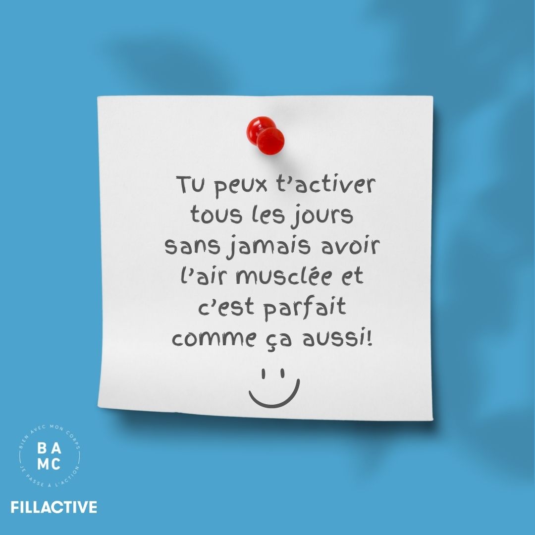 En plus, il ne faut pas confondre “être musclée” et “avoir l’air musclée”. Faire du sport régulièrement et développer des muscles de plus en plus forts et endurants, c’est formidable! C’est possible que tout ça ait lieu sans aucun impact sur ton apparence. Tu peux t’activer tous les jours sans jamais avoir l’air musclée et c’est parfait comme ça!