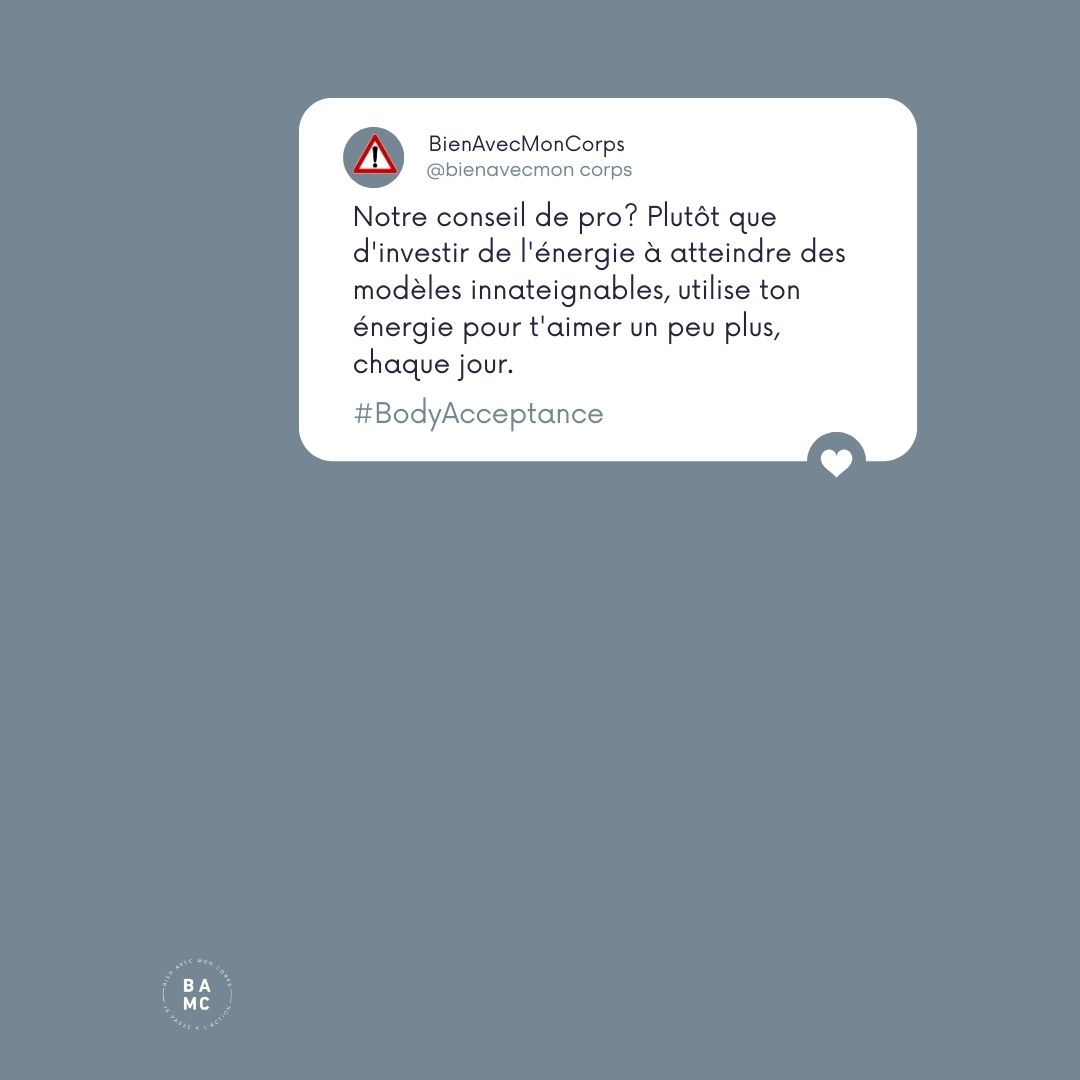 Notre conseil de pro? Plutôt que d’investir de l’énergie à atteindre des modèles inatteignables, utilise ton énergie pour t’aimer un peu plus, chaque jour.
