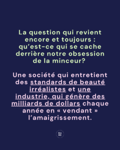 La réponse : Une société qui entretient des standards de beauté irréalistes et une industrie, qui génère des milliards de dollars chaque année en « vendant » l’amaigrissement.
