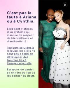 Elles sont victimes d’un système qui manque de respect, de bienveillance et d’authenticité. Toujours scrutées à la loupe, les stars ne sont pas à l’abri de développer des troubles liés à l’image corporelle. Essayons de garder ça en tête au lieu de les pointer du doigt.